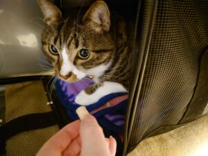 ご飯はしっかり食べてくれていて、おやつの方は手からは食べずでしたが近くに置いたら食べてくれました!