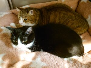 お部屋の中では2匹共隠れる様子もなく、仲良くベッドの上でくつろいでました♡並んでる姿が可愛いです(。ᵕᴗᵕ。)