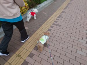 お散歩では2匹一緒に仲良く歩いていました🐾2匹共人懐っこくフレンドリーなのでお散歩中に出会ったワンちゃん達や飼い主さんともすぐ打ち解けていました(,,>᎑<,,)